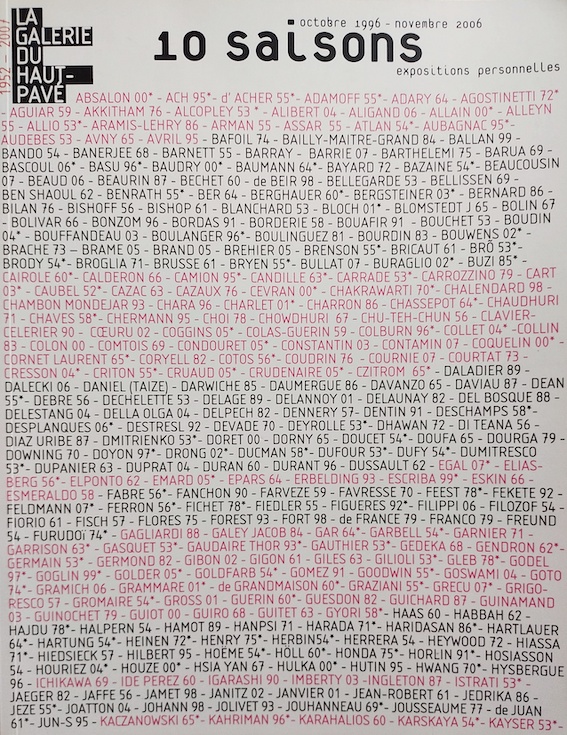 La galerie du haut pavé, 10 saisons, octobre 1996 – novembre 2006, Galerie du Haut Pavé, Paris, 2007.