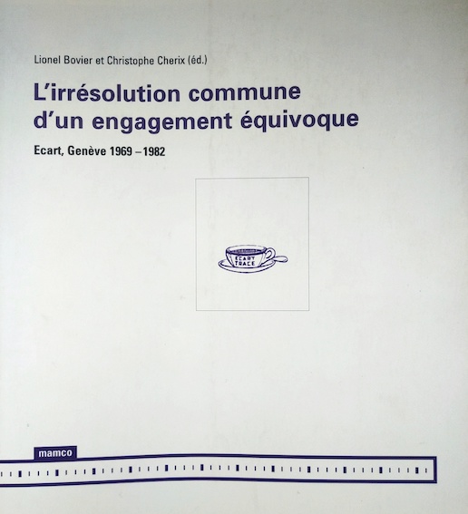 BOVIER, Lionel et CHÉRIX, Christophe, L’irrésolution commune d’un engagement équivoque, Ecart, genève 1969-1982, mamco, 1997.