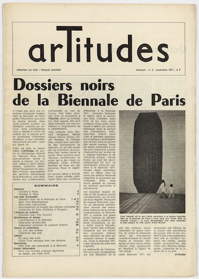 Artitudes N°2, novembre 1971, François Pluchart (dir.). Dossiers noirs de la biennale de Paris. Contributions de :