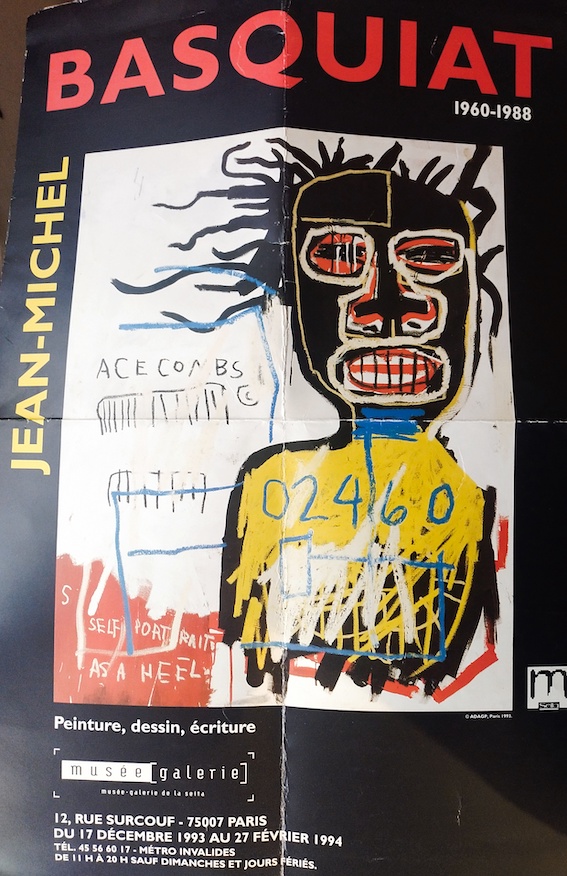 BASQUIAT, Jean-Michel, affiche de l’exposition Jean-Michel Basquiat, œuvres sur papier, musée Maillol, Paris, 1997.