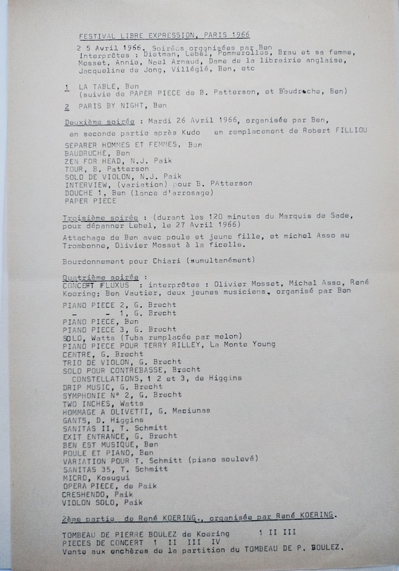 Ben (Benjamin Vautier, dit), programme du Festival de la libre expression, organisé par Ben, Avril 1966.