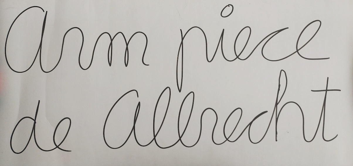 Ben (Benjamin Vautier, dit), Arm piece de Allrecht), intervention au feutre au dos d’une matrice de couverture de catalogue, 38 x 86 cm.