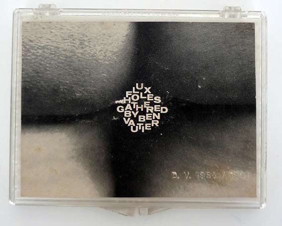 Ben (Benjamin Vautier, dit), Flux Holes Gathered, 1964-1981, Boîte en plastique, photographie et pailles en plastique. Dimensions : 12 x 9,5 x 1 cm.