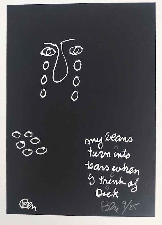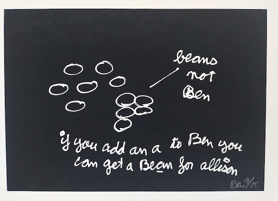 Ben (Benjamin Vautier, dit), beans not Ben, sérigraphie sur carton, ex. 9/25, signé.