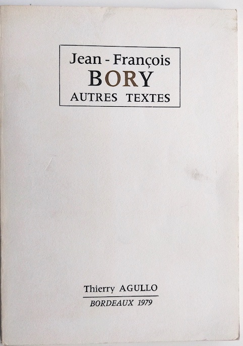 BORY, Jean-François, Autres textes, Bordeaux, Thierry Agullo, 1979. Contient une œuvre num. 24/30, signé.