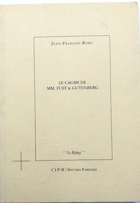BORY, Jean-François, Le Cagibi de MM. Fust & Guttenberg, Marseille, CPIM, 1992.