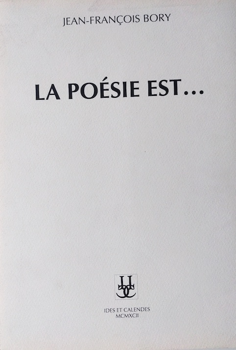 BORY, Jean-François, la poésie est …, Ides et Calendes, 1992, ex sur arches. HC, signé.