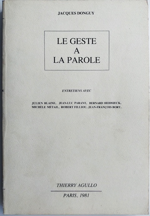 DONGUY, Jacques , Le geste à la parole, Paris, Thierry Agullo, 1981.