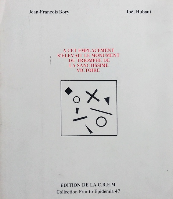 HUBAUT, Joël, BORY, Jean-François, , A cet emplacement s’élevait le monument du triomphe de la sanctissime victoire, édition de la C.R.E.M, 1987.