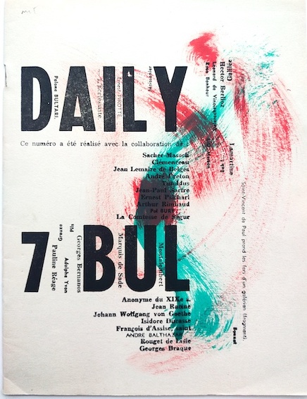 BALTHAZAR, André et BURY, Pol (dir.), Revue Daily-Bul 7 – Bah!, 1958. Interventions à la peinture et à la craie sur la couverture et sur toutes les pages. (toutes les interventions sont différentes).