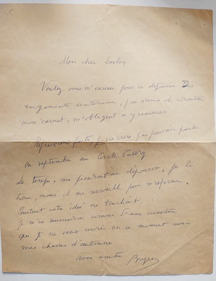 Bryen, Camille, lettre adressée à Looten, encre sur papier, 22 x 28 cm. inv. n° CB O39 19