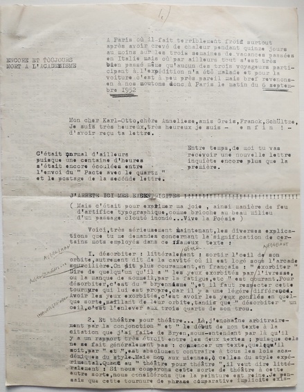 Jaguer, Edouard, Encore et toujours mort à l’académisme, septembre 1952, 2 pages dactylographiées. inv. n° CB O36 19