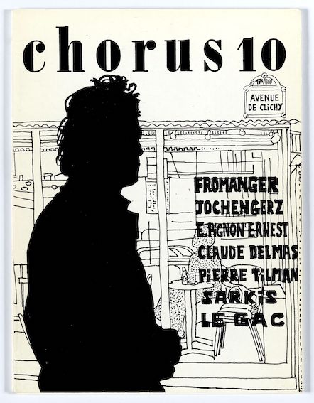 Revue Chorus N°10, 1973, Fondateur : Jean-Pierre Le Boul’ch, Rédacteurs : Pierre Tilman, Franck Venaille, Daniel Biga et Claude Delmas). ex. signé par Jean Le Gac. contient une sérigraphie de Gérard Fromanger. contributions de : [Gérard FROMANGER] « Avenue de Clichy » et entretien. [Jochen GERZ] interview. [Ernest PIGNON-ERNEST] entretien. Textes et poèmes par Rémi Esnault, par Robert Creely, par Goran Sonnevi, par Claude Delmas et par J.P. Le Boul’ch. Dossier [Jean LE GAC]. SARKIS.