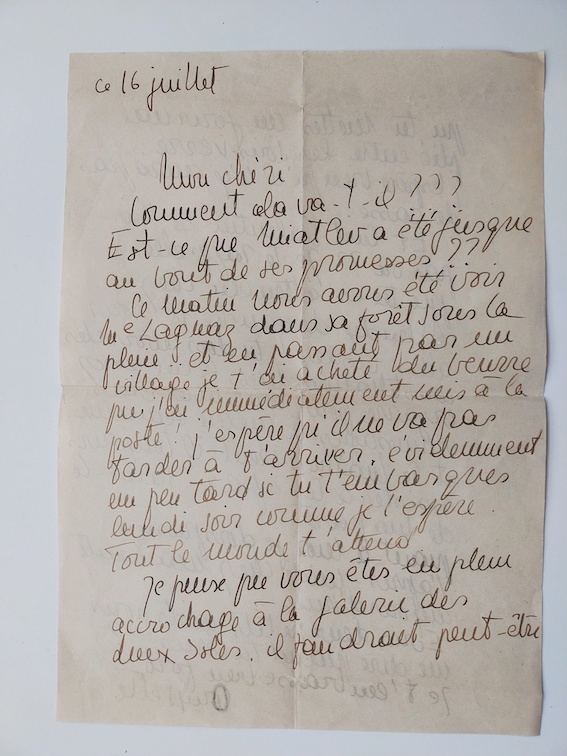 Bryen, Camille, lettre de sa femme Louisette à Bryen, 16 juillet, 21 x 29,7 cm.