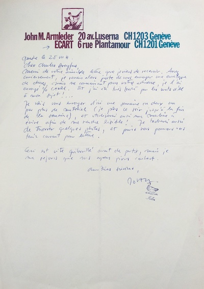 Spoerri, Daniel, courrier du 28 novembre 1975.