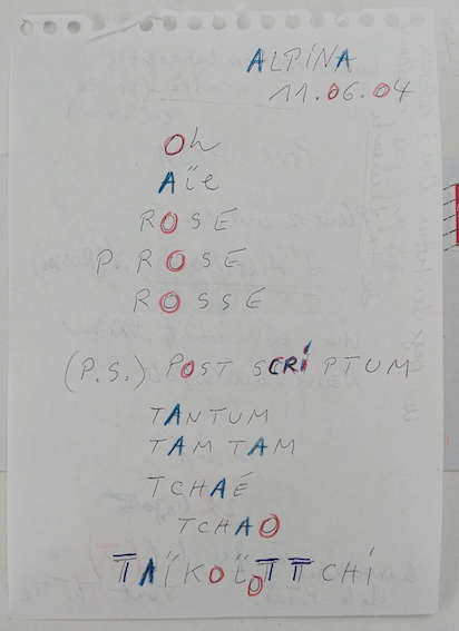 Bernard Heidseick, envoi à Henri Chopin,intervention sur papier Kraft.