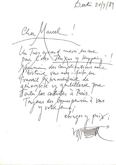 Vostell, Wolf, lettre adressée à Marcel, Berlin, 21 septembre 1989.