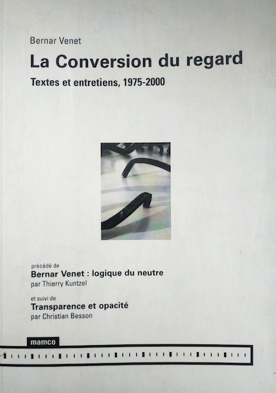 VENET, Bernar, La Conversation du regard, textes et Entretiens, 1975-2000, Genève, Mamco, 2000.