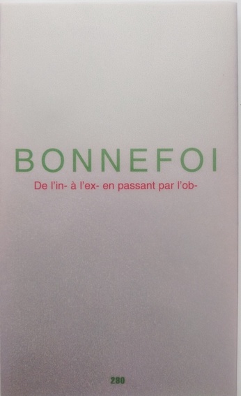 Bonnefoi, Christian, De l’in-à l’ex-en passant par l’ob-, Paris, éd. Jannink, 2002, ex. num. 108.