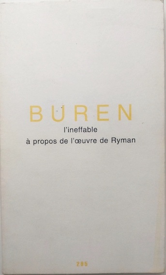 Buren, Daniel, l’ineffable à propos de l’œuvre de Ryman, Paris, éd. Jannink, 1999, ex. num. 229.