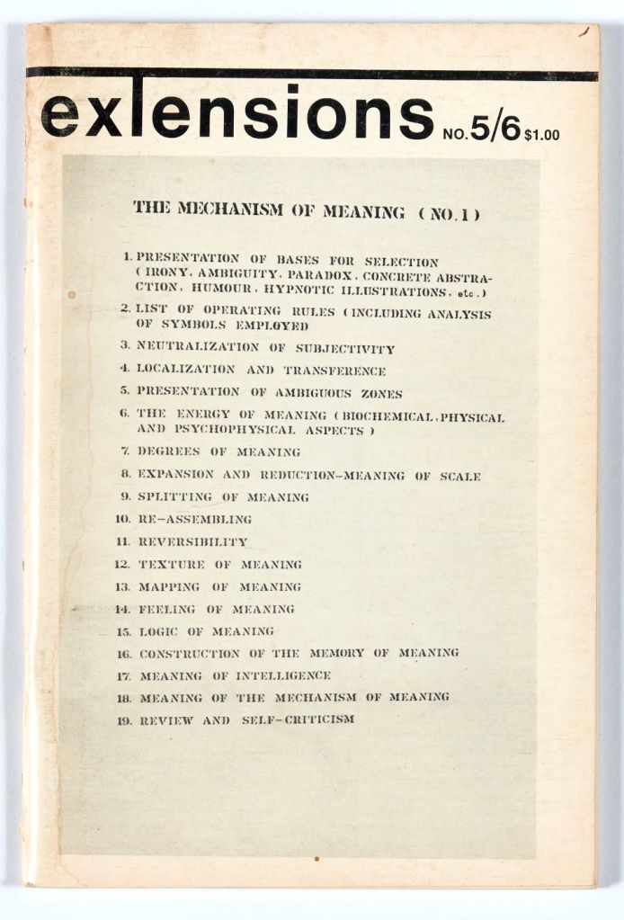 Extensions # 2, Extensions, New York, 1968, 15 X 23 cm. Acconci Vito Hannibal, Breton André, Chatard Jean, Cohen Marvin, Conley James, Di Prima Diane, Dunn Denis, Ferrari Mary, Ford Charles Henri, Gallup Dick, Graham Dan, Hayn Annette, Heliczer Piero, Heller Michael, Hildesheimer Wolfgang, Kern Robert, Krolow Karl, Malanga Gerard, McCaig Don, Nikuni Seiichi, Reverdy Pierre, Rosen Allan, seidman Hugh, Thiel Paul, Towle Tony, Trakl Georg, Williams Emmett