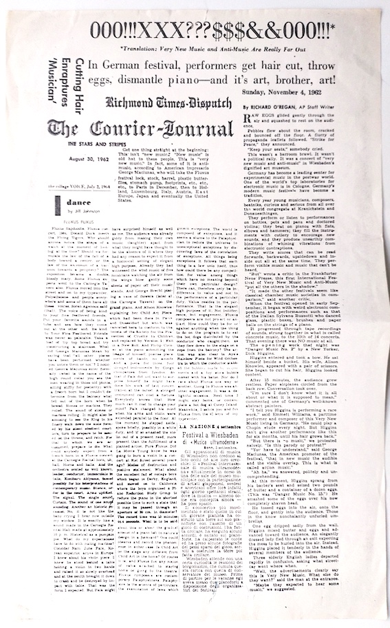 Article de Johnston, Jill, dance, in The Courier-Journal, New York, 30 août, 1962.
