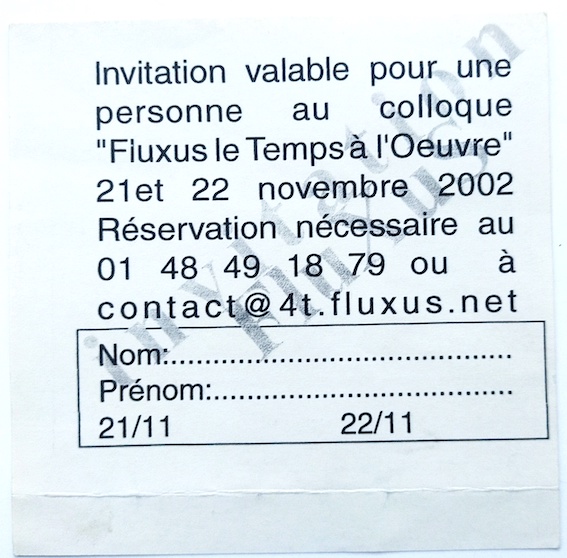 Fluxus, Invitation pour le colloque Fluxus le temps à l’œuvre, 2002.