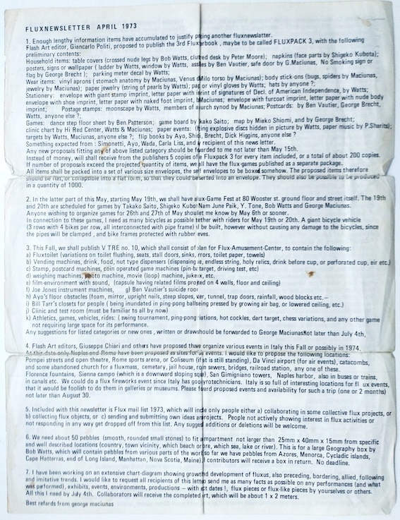 Fluxnewsletter, April 1973.