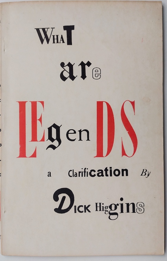 Higgins, Dick, What are Legends a clarification, Paper Editions Corporation. 1960.