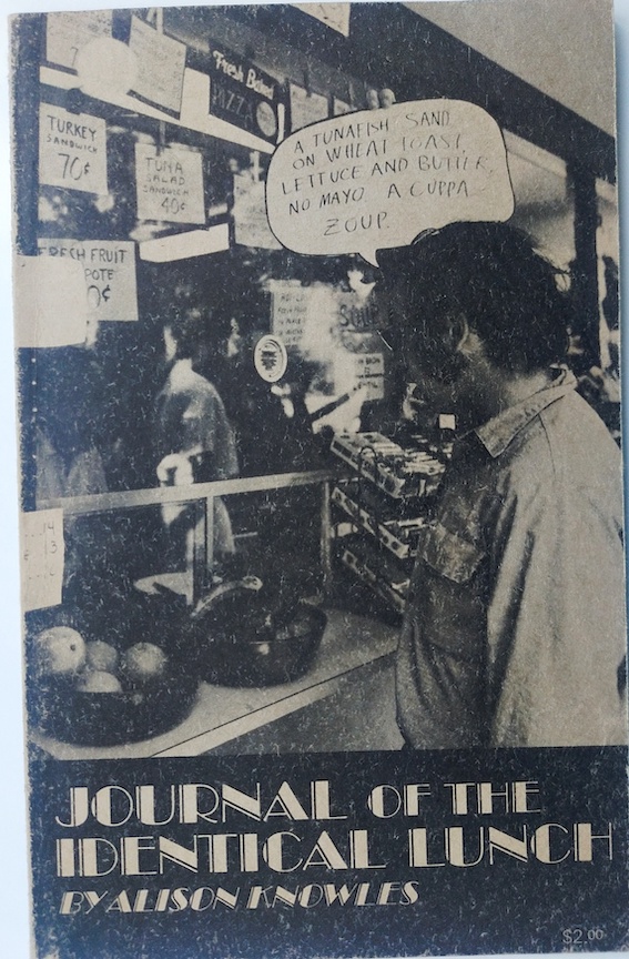 Knowles, Alison, Journal of the Identical Lunch, Nova Broadcast Press, San Francisco, 1971.