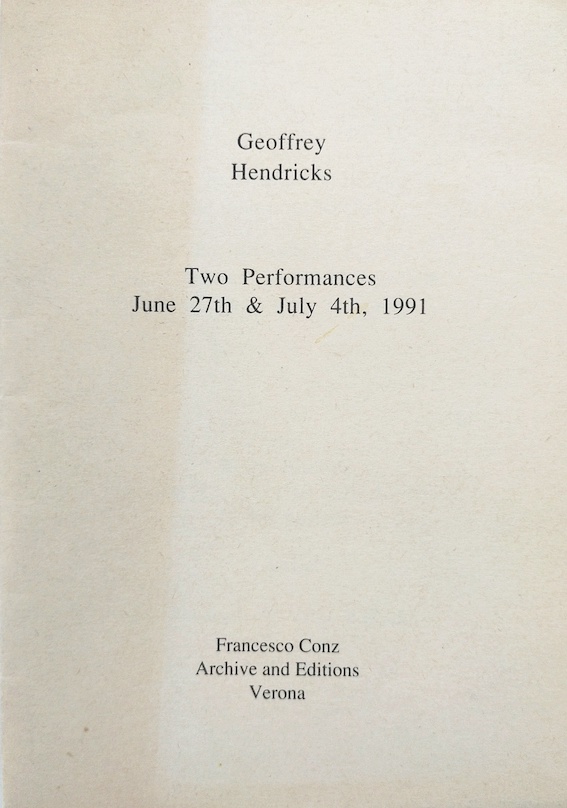 Hendricks, Geoffrey, Two Performances, june 27th & July 4th, 1991, Verona, Francesco Conz, 1991.