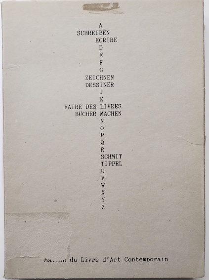 Tomas Schmit, Andrea Tippel, Maison du livre d’Art contemporain Domart-en-Ponthieu, Boitier contenant deux livres d’artiste : Edition imprimée du cahier original « 64 Dramotlette » D’Andréa Tippel, Edition imprimée du cahier original « Die Charlottenburger Schlange » de Tomas Schmit, 22 x 30.5 cm, 1993.