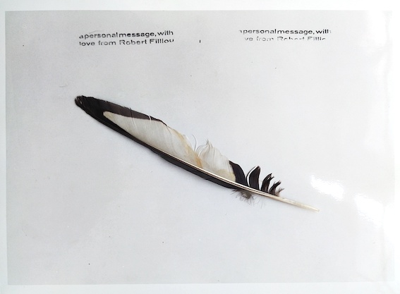 Filliou, Robert, a personal message, plume collée sur papier photo, 23,7 x 17,8 cm. inv. n° RF051 07