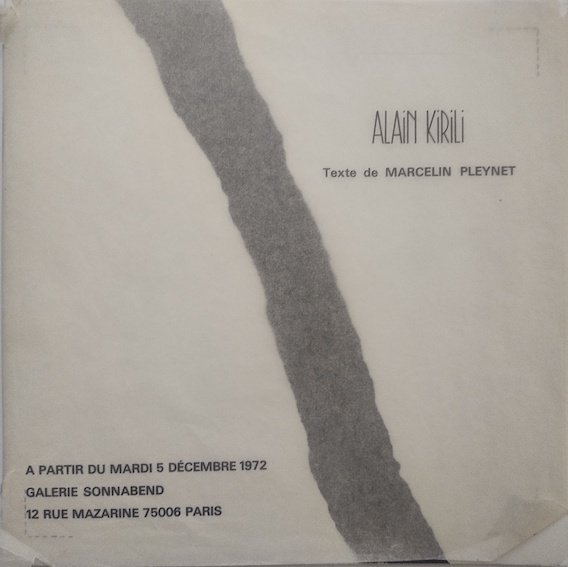 Kirili, Alain, Galerie Sonnabend, texte de Marcelin Pleynet, 1972.