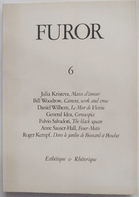 Furor N°6, Esthétique & Réthorique, Mai 1982, au sommaire : Julia Kristeva, Bill Woodrow, Daniel Wilhem, General Idea, Fulvio Salvadori, Anne Sauser-Hall, Roger Kempf.