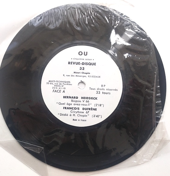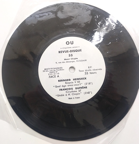 (Chopin, Henri), disque 45 t, revue OU Bernard Heidsieck, François Dufrêne, Gil J Wolman.