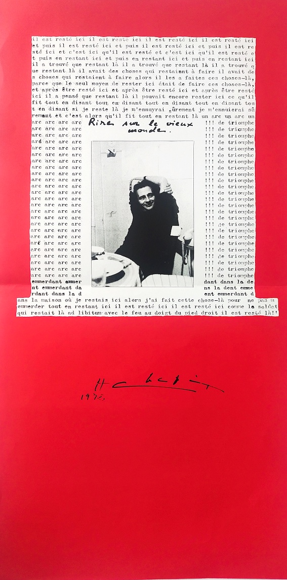 Chopin, Henri, rire sur le vieux monde, sérigraphie iml. noir et rouge, plié en deux, 2( x 50 cm. in revue OU N°38/39.
