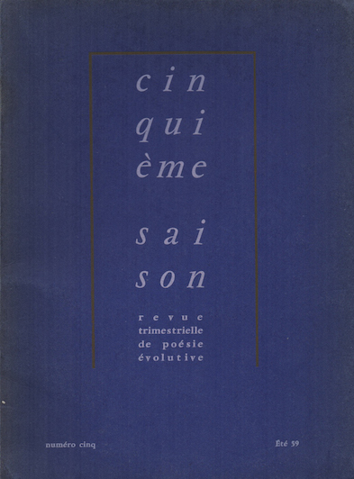 Cinquième saison, N°5, 1959, Edité par Gressey par Houdan, directeur : Raymond Syte. Rédacteur en chef : Henri Chopin.