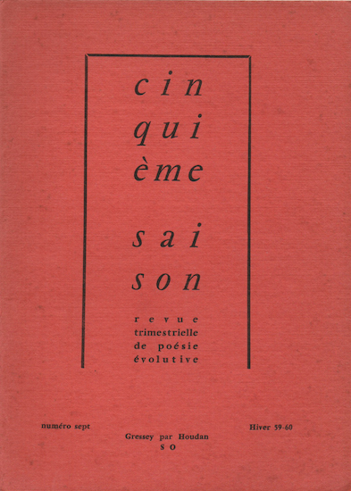 Cinquième saison, N°8, 1960, Edité par Gressey par Houdan, directeur : Raymond Syte. Rédacteur en chef : Henri Chopin.