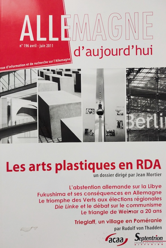 Allemagne d’aujourd’hui N°196, avril-juin 2011, Les arts plastiques en RDA, Septentrion Presses, 2011.
