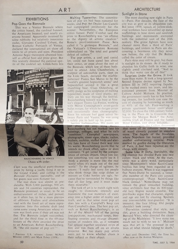 Pop Goes the Biennale, Time, July 1964.