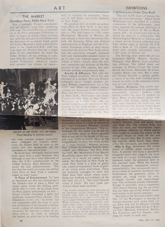 Goodbye Paris, Hello New York, Times, July 1964.