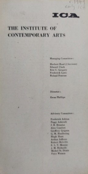 ICA, The Institute of Contemporary Arts, Londres, catalogue, 1949.