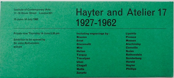Carton d’invitation, Hayter and Atelier 17, 1927-1962, ICA, Londres, 1962.