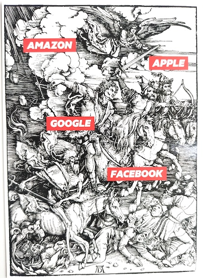 Klaus Staeck, Die apokalyptischen Reiter, nach Albrecht Dürer, 2014, Edition Staeck, 10 x 15 cm.