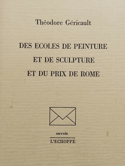Théodore Géricault, Des écoles de peinture et de sculpture et du prix de Rome, Paris, L’Échoppe, 1990.
