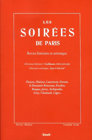 Les Soirées de Paris, N°26 & 27, Juillet/Août 1914. Au sommaire : Maurice de Vlaminck, Fernand Léger, Marius de Zayas, F.S. Flint, Gabriel Ardouin, Guillaume Apollinaire, Roch Grey, Max Jacob, Mireille Have, Albert Savinio, Léopold Sturzwage, Léonard Piieux, Blaise Cendrars, Georges Rouault, Maurice Raynal, G.P. Fauconnet, Alan Seeger, Jacques Dyssord. (1ère publication des calligrammes d’Apollinaire).