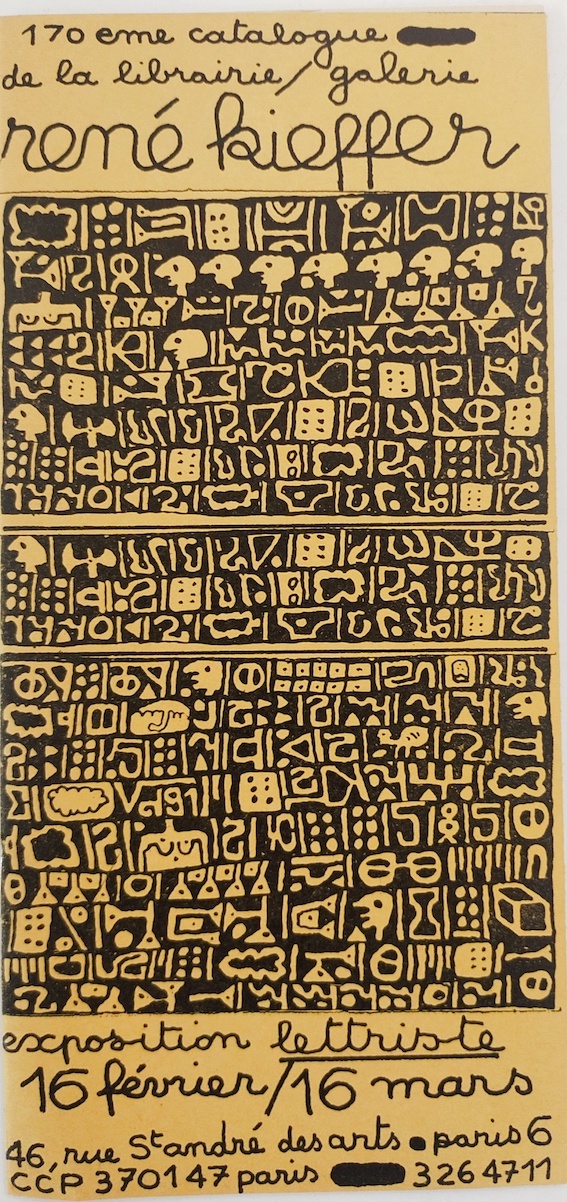 Catalogue de la librairie Galerie René Kieffer, exposition Lettriste, 1989.
