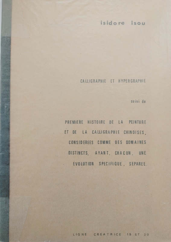 Isou, Isidore, Calligraphie et hypertrophie, lignes créatrice N° 19 et 20, Jacqueline Tarkieltaub (dir.).