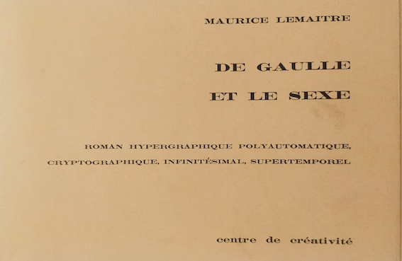 Lemaitre, Maurice, De Gaulle et le sexe, Roman Hypergraphique, Polyautomatique, Cryptographique, Infinitésimal, Supertemporel, Centre de Creativite, Paris, 1967.